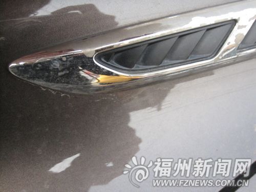 1日下午,記者見到了林先生。他告訴記者,這輛別克汽車是2012年5月份花50余萬元在福州中機中泰汽車銷售有限公司購買的,還沒到3個月,車上的電鍍配件就出現了褪色的現象。
